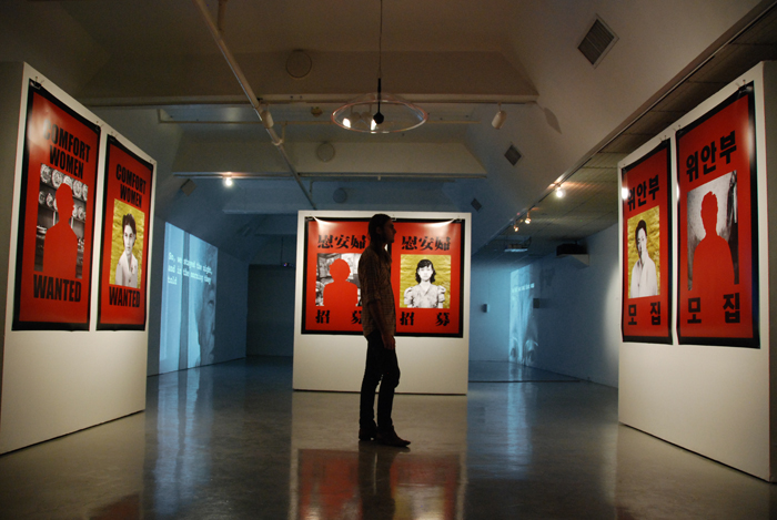 Ad-like Prints, Audio of Women Suvivors Singing in Multiple Languanges, and Multichannel Video Installation